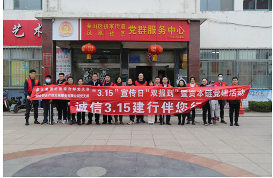 為進(jìn)一步普及社區(qū)群眾消費(fèi)者權(quán)益知識,增強(qiáng)日常消費(fèi)、網(wǎng)絡(luò)消費(fèi)、金融消費(fèi)的維權(quán)意識。3月15日下午,藍(lán)天集團(tuán)紀(jì)委綜合部黨支部和煙臺聯(lián)合產(chǎn)權(quán)交易服務(wù)有限公司黨支部邀請聯(lián)合產(chǎn)權(quán)“資本鏈”黨總支聯(lián)盟單位,以紅色黨建為引領(lǐng),以消費(fèi)者權(quán)益日為契機(jī),在初家街道鳳凰社區(qū)開展“3.15”宣傳日雙報(bào)到暨資本鏈黨建活動(dòng)。集團(tuán)黨委委員、聯(lián)合產(chǎn)權(quán)黨支部書記、董事長初志杰同志,集團(tuán)黨委委員、紀(jì)委書記湯志厚同志,以普通黨員身份參加。