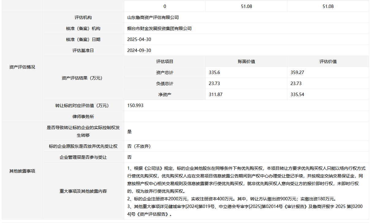 • 轉(zhuǎn)讓方:煙臺市財金投資控股有限公司