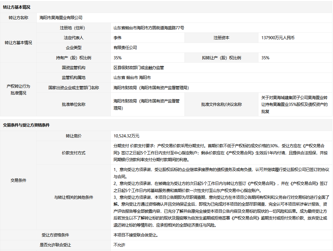 • 轉(zhuǎn)讓方:海陽(yáng)市昊海置業(yè)有限公司