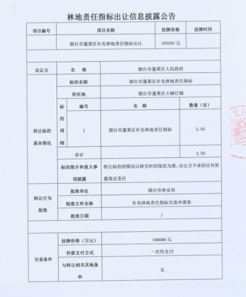 煙臺(tái)市蓬萊區(qū)林地責(zé)任指標(biāo)出讓