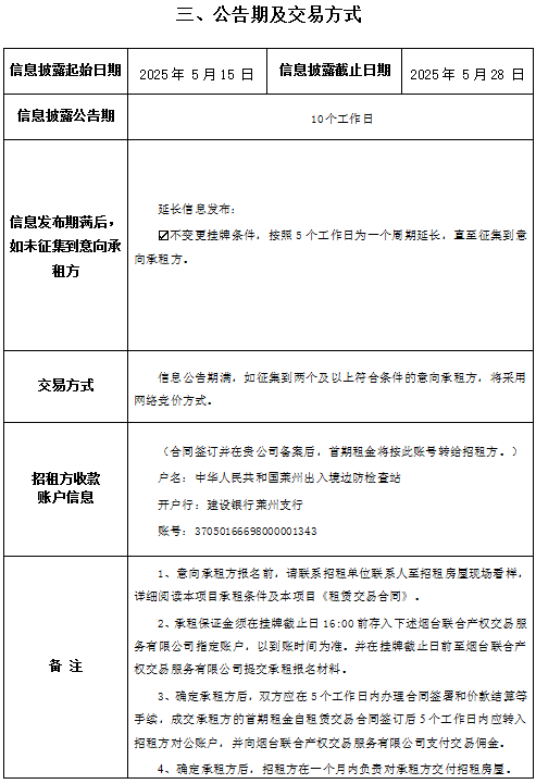 • 掛牌起止日期:2025年05月15日至2025年05月28日