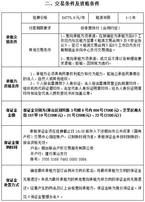 • 保證金支付方式:銀行轉(zhuǎn)賬