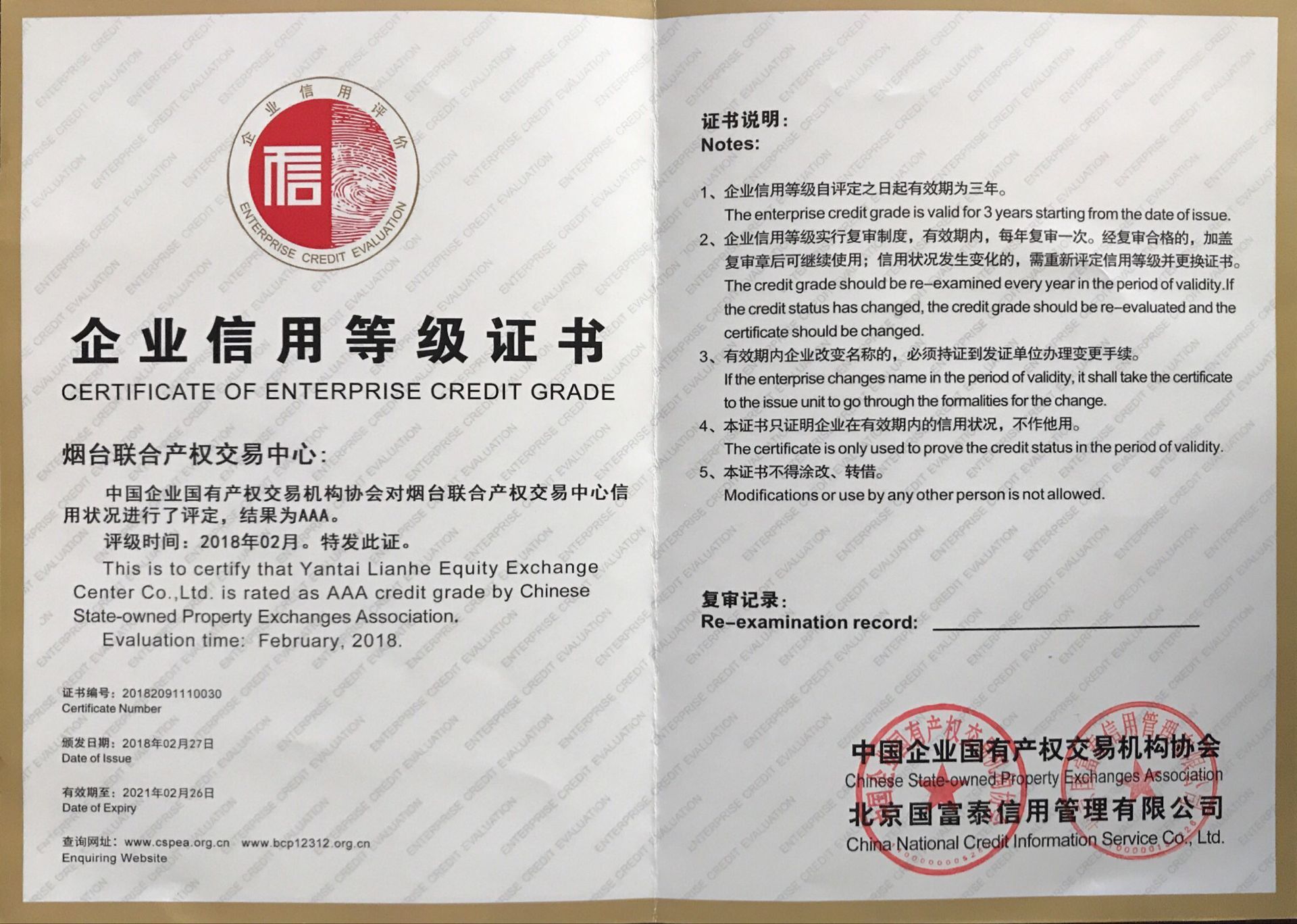 煙臺聯(lián)合產權交易中心獲評行業(yè)信用評級AAA級榮譽