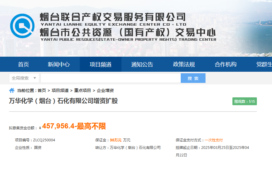近日,我市重點(diǎn)國企混改項(xiàng)目“萬華化學(xué)(煙臺)石化有限公司增資擴(kuò)股”通過山東產(chǎn)權(quán)交易中心與煙臺聯(lián)合產(chǎn)權(quán)交易服務(wù)有限公司(以下簡稱“煙臺聯(lián)合產(chǎn)權(quán)”)聯(lián)合掛牌,成功實(shí)現(xiàn)45.79億元增資目標(biāo)。本次引入境外投資方1家(增資后占股25%),為科威特石化工業(yè)公司(科威特石油公司全資子公司),該公司成立于1963年,位于科威特艾哈邁迪省,注冊資本6億科威特第納爾(約折合人民幣139.38億元),是科威特石化領(lǐng)域的核心企業(yè),在全球石化行業(yè)中占據(jù)重要地位。此次交易創(chuàng)下我市國有企業(yè)增資擴(kuò)股單筆最高交易紀(jì)錄,標(biāo)志著我市要素交易平臺服務(wù)國企改革取得新突破。